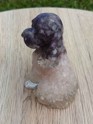 *SOLD*. Resin Spaniel with Amethyst and Rose Quartz - handmade in Wellsford