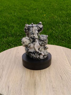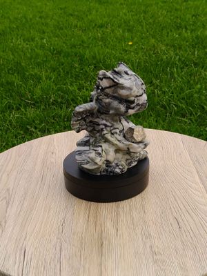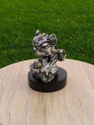 Very detailed, hand carved, large Baby Dragon figurine - Zebra Serpentine