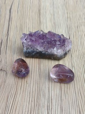 A Grade Bolivian Ametrine tumbles - Calming Amethyst with the positive energy of Citrine, plus an A Grade Brazilian Amethyst mini cluster.