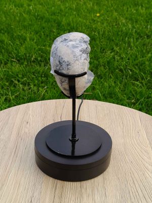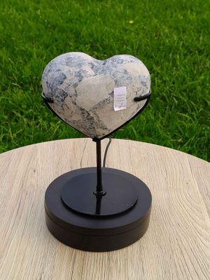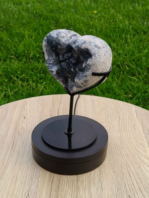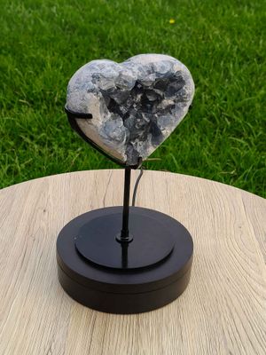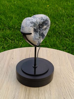 Blue Celestite heart on metal stand
