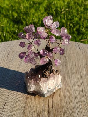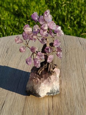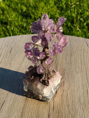 Amethyst tumbled gem tree on an Amethyst cluster