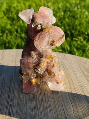 Tiger's Eye and Strawberry Quartz Schnauser in resin